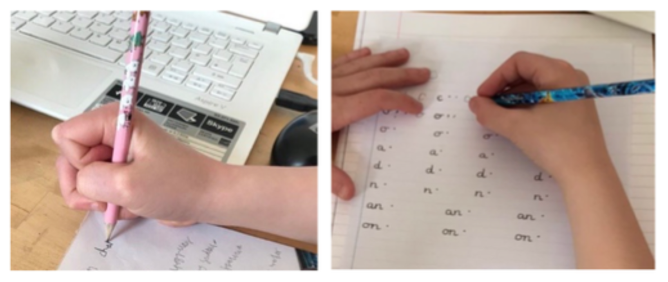 Charlie's handwriting was very difficult to read. He didn’t see himself as a writer and his sisters would point out that they couldn’t read his writing. He also mentioned his hand ached after a period of writing. He says his new grip's really comfy. From what I can see he's not going back to his old grip at all! I’m not sure I would have realised Charlie's pen hold was contributing to the presentation of his handwriting. Parents and carers may not realise. I know Charlie’s teachers hadn’t done anything to help him to correct it and I’m not sure as to the reasons why. Perhaps they didn’t realise they can, perhaps they thought it would change as he gets older or perhaps they just didn’t know how to help him.
